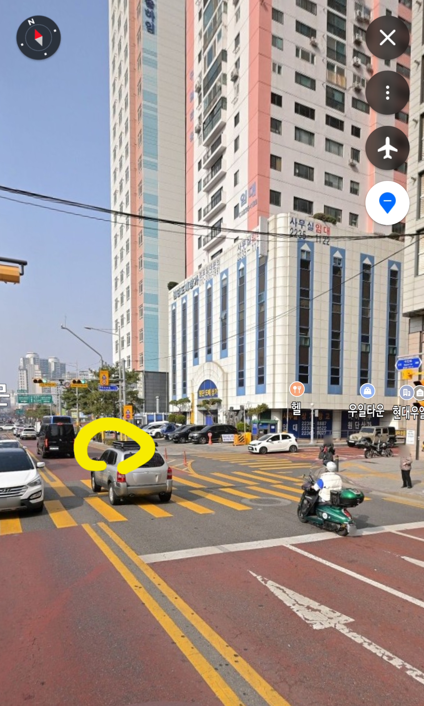 위지도사진에서 제차가 파란색, 노란색이 신호등 ,빨간색이 카메라입니다.  고수님들 조언부탁드려요