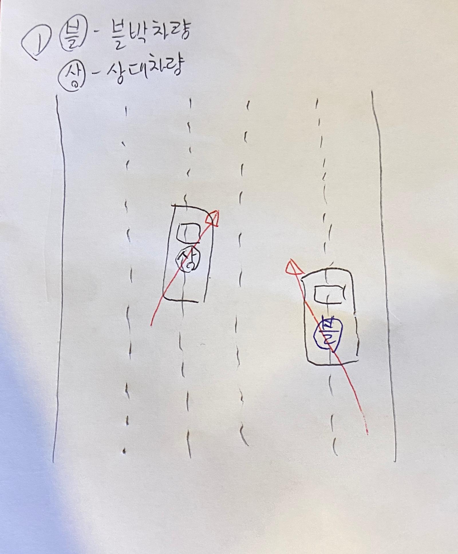 상대방은 2차선에서 3차선, 4차선으로 변경하다 사고가 났습니다.