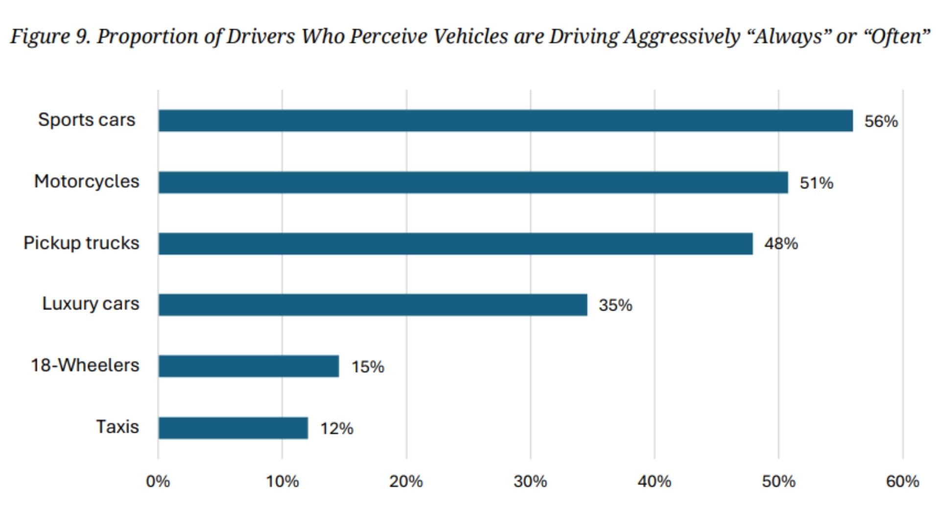 차종별 성향: 스포츠카, 대형 트럭, 오토바이 운전자가 공격적인 성향을 보일 가능성이 더 높았으며, 일부는 자신의 차량이 더 강력하거나 우월하다고 느끼게 한다고 답했습니다. 특히, Lending Tree의 조사에 따르면 테슬라 운전자가 도로에서 가장 난폭한 운전자일 가능성이 높게 지목되기도 했습니다.