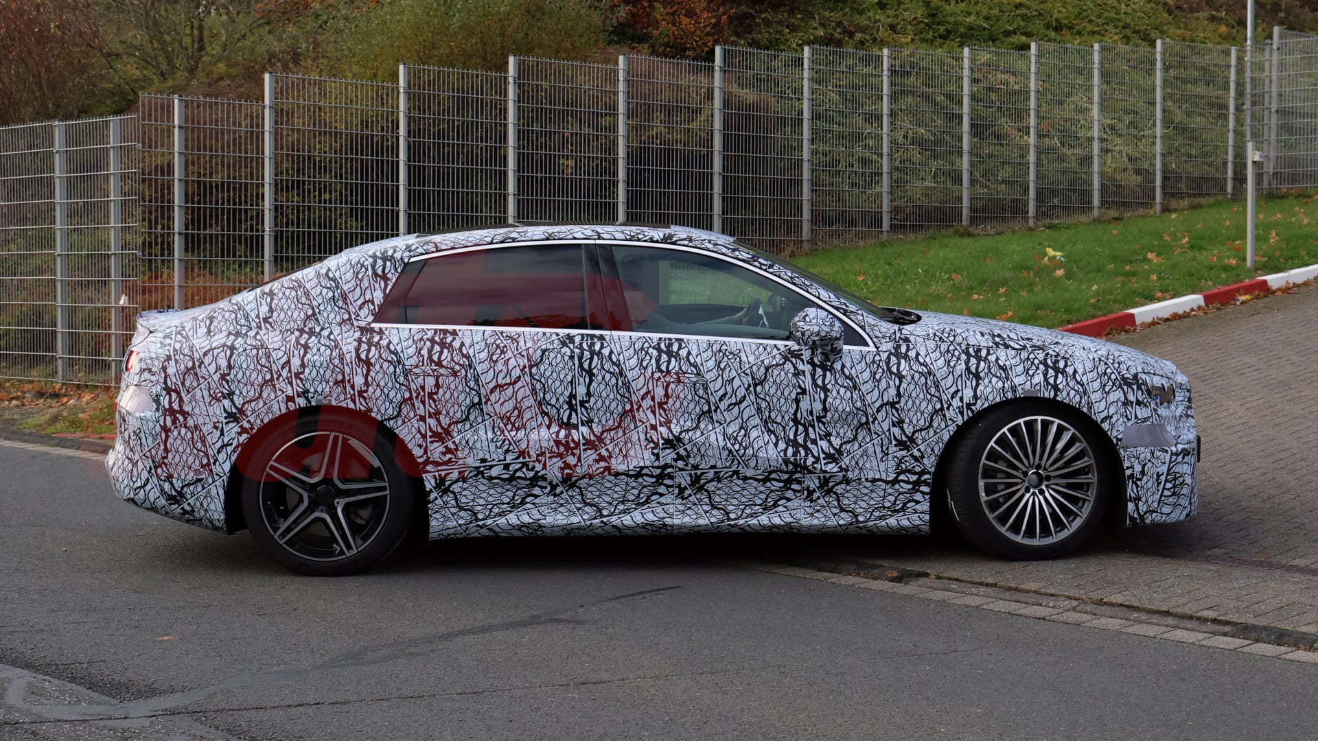 세단과 패스트백의 경계: 후면은 경사진 트렁크 형태로 세단과 패스트백의 경계를 오가는 듯하며, 리프트게이트 대신 작은 립 스포일러가 장착될 것으로 보입니다(신형 CLA처럼 가변형일 가능성도 있음). 또한, 노출된 차체 일부에서 고성능 EV임을 강조하는 유광 블랙 디퓨저 패널이 확인되었습니다.